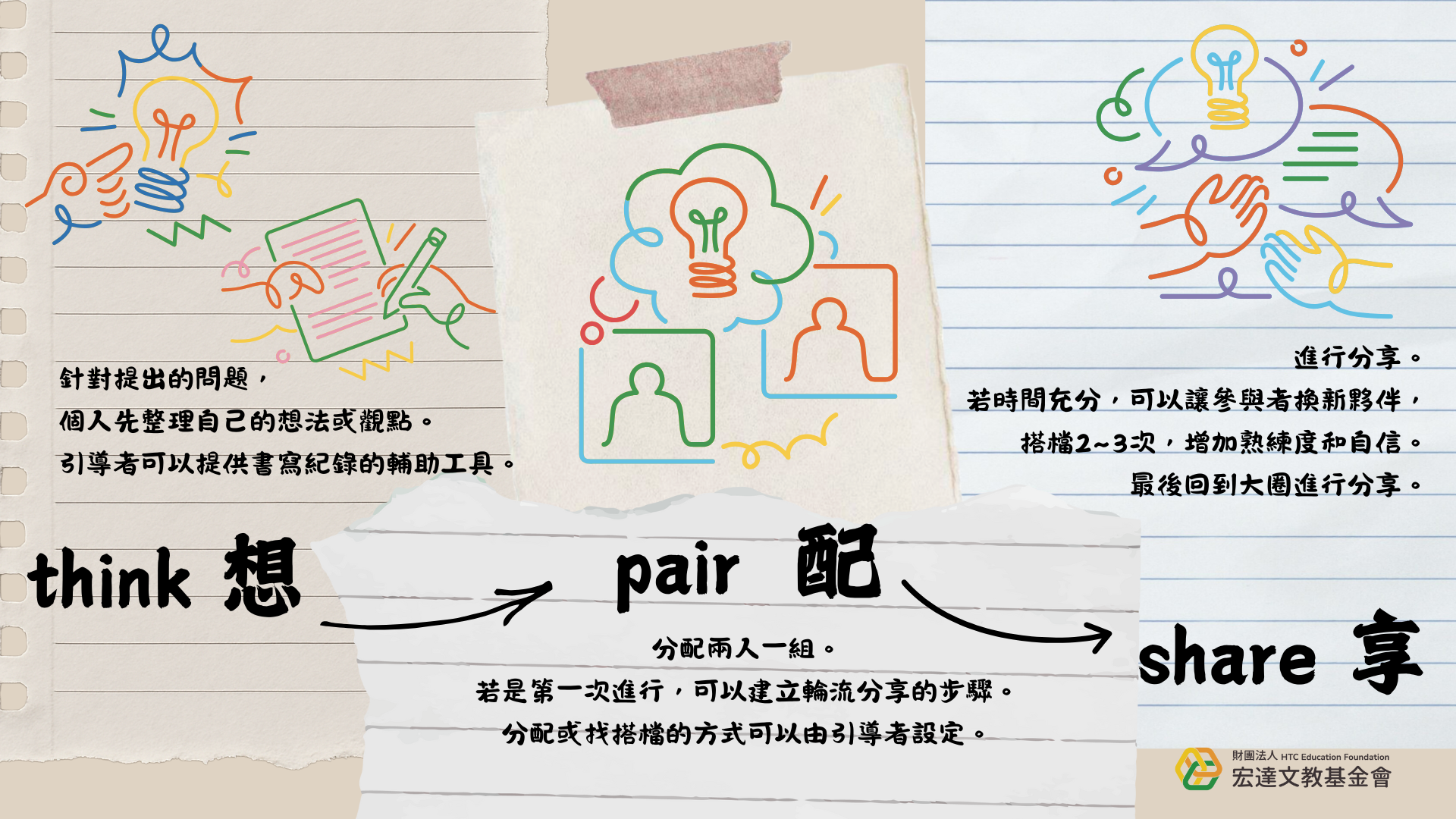 ● 循序漸進的安排過程,例子:Think-Pair-Share(想-配-享)活動