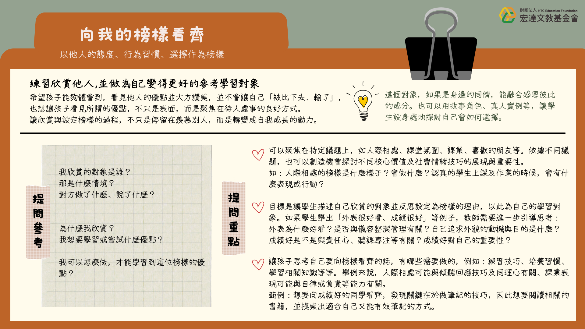 3.向我的榜樣看齊:欣賞他人,並從他人身上學習好品格與優點。